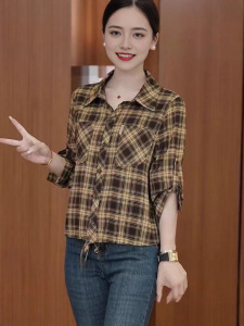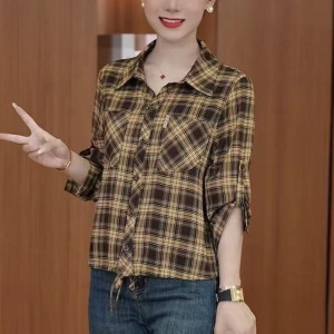 【店铺热销】百搭春夏季新款女装衬衫格子宽松休闲百搭翻领妈妈装