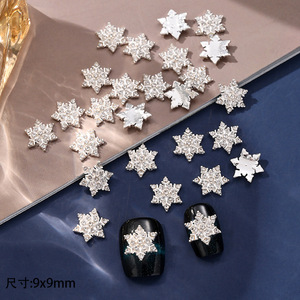 新款跨境圣诞雪花金属镶钻美甲饰品指甲镂空满钻美甲穿戴甲钻饰品