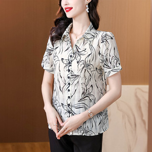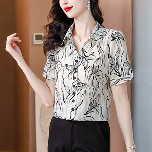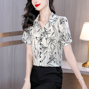 短袖雪纺衬衫女2025夏季新款洋气宽松显瘦遮肚子印花百搭时尚衬衣