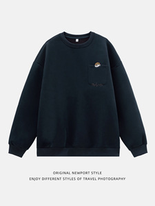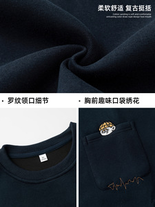 口袋刺绣设计圆领卫衣男秋季新款重磅质感潮牌套头衫宽松廓形外套