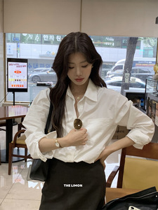 the limon柠檬绿茶宽松长袖法式复古衬衫女2025秋季上衣衬衣外套