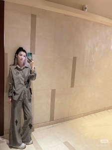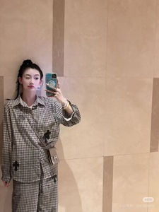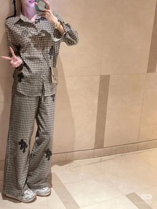 ch秋季新款格子衬衫+阔腿裤套装十字花刺绣 慵懒感十足
