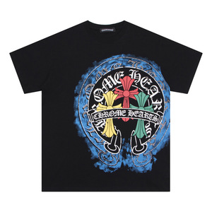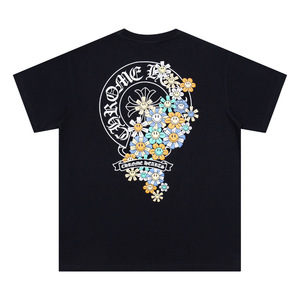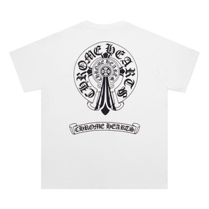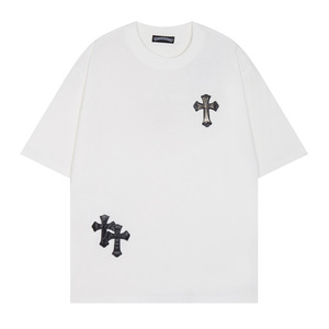 克罗伈Chrome Hearts大马蹄十字花烫印休闲宽松男女款短袖T恤