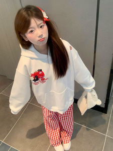 苹果小猫刺绣连帽卫衣女2025夏季新款美式重工纯棉国潮牌显瘦上衣