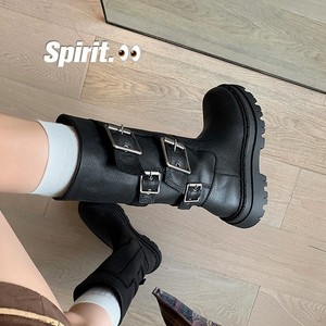 超显瘦厚底美拉德长靴女酷暗黑大筒围方扣骑士靴胖妹妹粗腿高筒靴