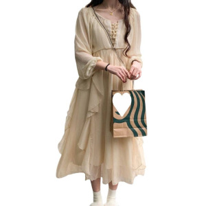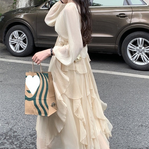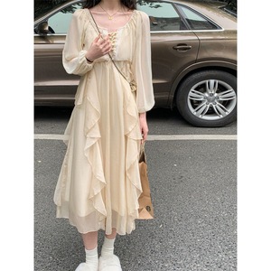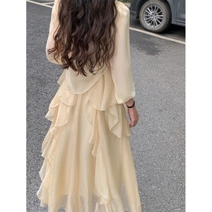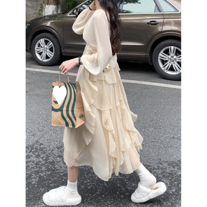 超仙森系秋夏新款气质仙女裙长袖防晒两件套法式温柔风吊带连衣裙