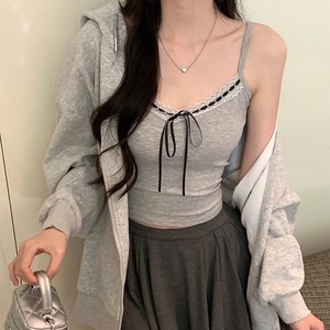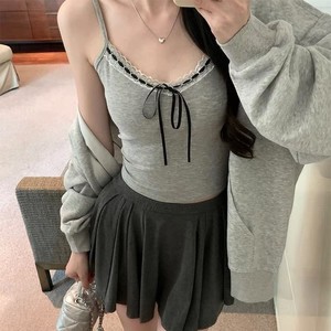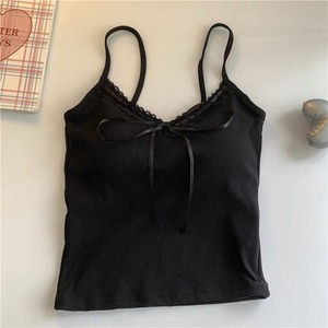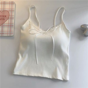 纯欲蕾丝花边吊带背心女带胸垫内搭外穿甜辣妹蝴蝶结短款美背上衣