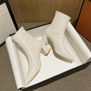 高跟短靴女2025秋冬新款韩版拉链尖头女靴裸靴百搭网红马丁靴女鞋