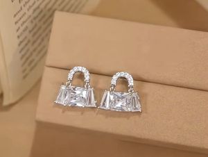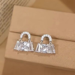 轻奢高级感满钻锆石方糖包包耳环女小众设计2025新款时尚百搭耳饰