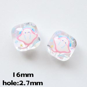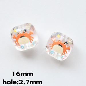童趣卡通海洋系列印花16mm馒头珠透明 DIY通孔串珠手机链项链材料