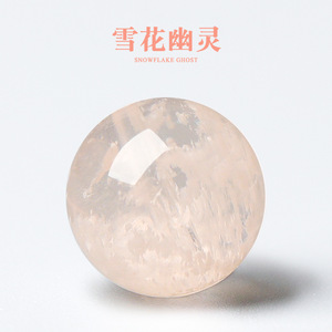 天然粉雪花幽灵异象水晶散珠单颗圆珠diy手工串珠手链饰品配件