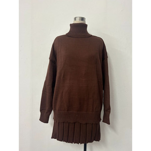 2025 秋の新クロスボーダーセーターヨーロッパとアメリカの貿易婦人服ラウンドネックレトロファッションプリーツスカートスーツ女性