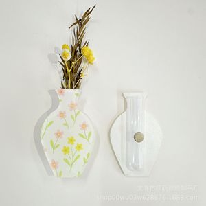 花瓶冰箱贴迷你手工亚克力通透搭配玻璃小试管注水插花磁力冰箱贴