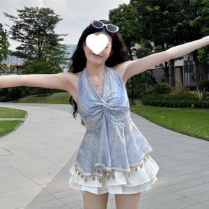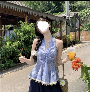 2025夏韓国風重工業気質Vネック【ビーズ加工】ツイストショート小柄ホルターネックサスペンダーバック