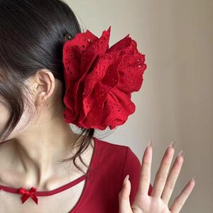 4#红色珍珠撞色抓夹13cm