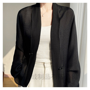 夏盘扣针织防晒开衫外搭薄款天丝开衫女高级感韩外套百搭款上衣女