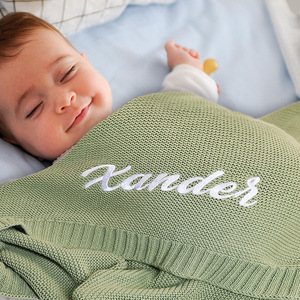 跨境批发婴儿绣花纯棉盖毯针织抱被午睡毯儿童沙发毛毯婴儿车盖毯