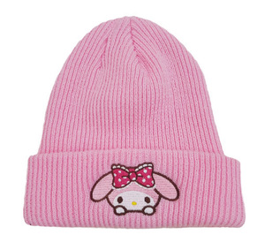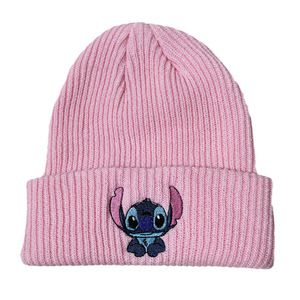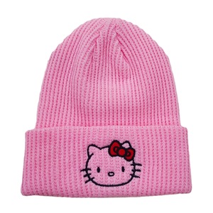 可爱小猫刺绣针织帽欧美卡通猫咪毛线帽保暖帽情侣套头帽子