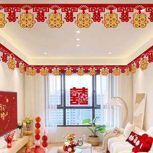 婚房吊顶拉花喜字结婚客厅装饰卧室布置墙边喜套装婚庆用品大全