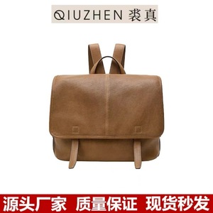 裘真植鞣羊皮信使系列双肩包大容量上班通勤休闲背包2025新款