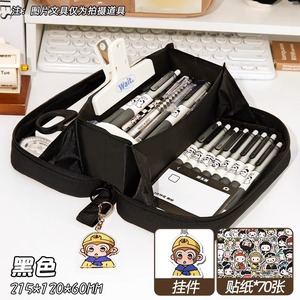 黒のペンケース + 西遊記ステッカー 70 枚 + ペンダント + pp クリップ + 付箋