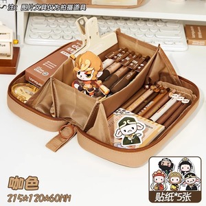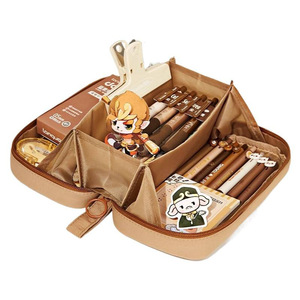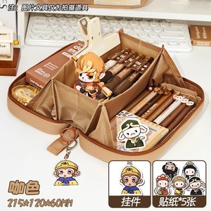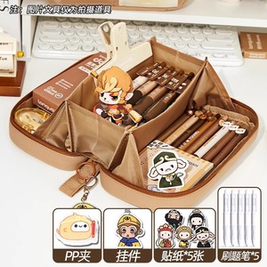 茶色のペンケース + 西遊記ステッカー 5 枚