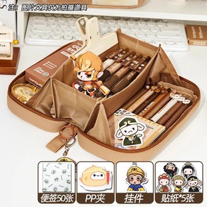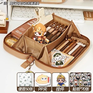 ベージュのペンケース + 西遊記ステッカー 5 枚 + ペンダント + pp クリップ + 付箋