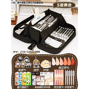 【学習セット】黒ペンケース+西遊記シール5枚+PPクリップ+ペンダント+筆記ペン5本+付箋+蛍光ペン4本+定規4点セット+修正テープ6本