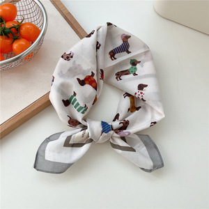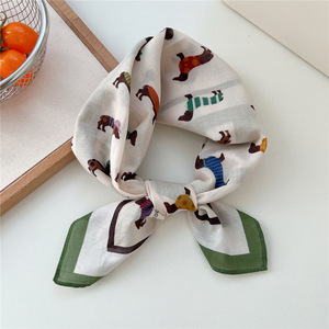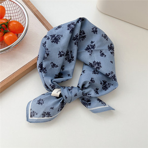 韓国の文学装飾小さなシルクスカーフ韓国スタイルのファッショナブルで多用途な春と夏の新鮮で通気性のある綿とリネンの小さな正方形のスカーフ女性用ソフト