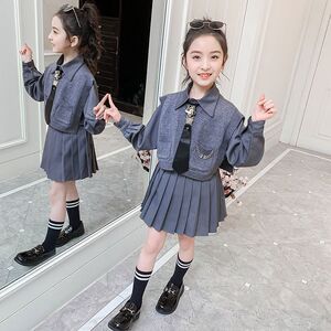 女童春秋连衣裙2022新款春装洋气时髦儿童裙子学院风jk网红套装潮