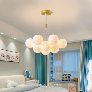 客厅卧室吊灯主卧月球泡泡灯北欧创意餐厅儿童房网红星球中山灯具