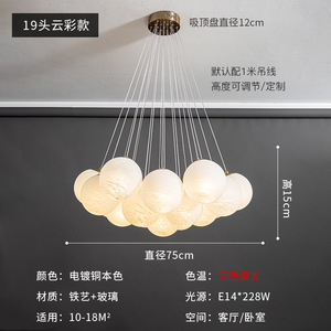 金色19头云彩玻璃15CM三色光 E14灯头超亮款