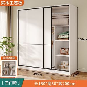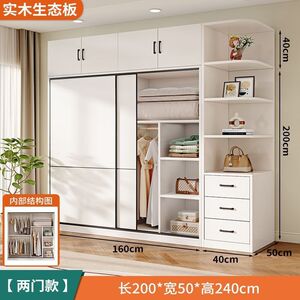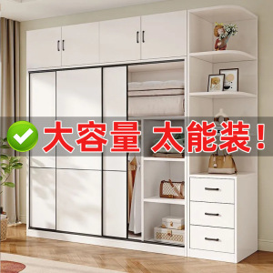 衣柜家用卧室实木推拉门小户型柜子简约现代儿童简易组装木质衣橱