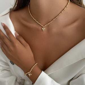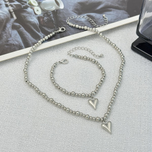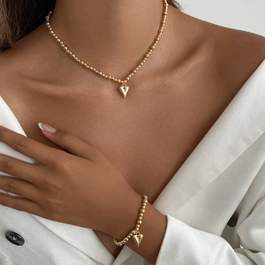 欧美跨境饰品 ins甜妹风CCB串珠项链 小众高级感爱心吊坠项饰套装