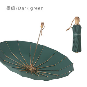 【16骨折叠伞-手动款】日系-彩胶晴雨-墨绿色