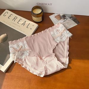 奶糖少女~日系纯欲蝴蝶结少女内裤棉质透气中腰舒适女士三角裤