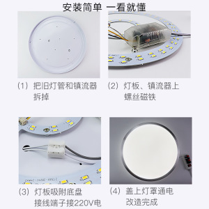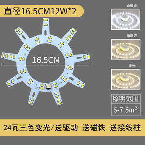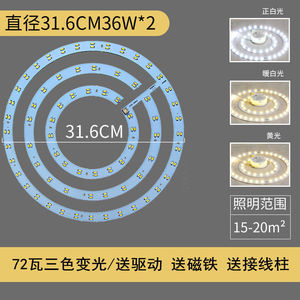 led吸灯灯板灯盘圆形替换灯芯灯带灯条H型灯管三色变光遥控风扇灯