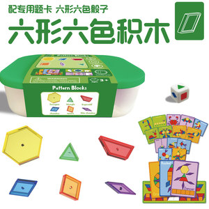 透明六形六色早教玩具透明积木片幼儿园教具塑料拼图含题卡骰子