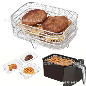跨境热销不锈钢圆方形烧烤网架空气炸锅多层烤架烧烤篮可堆叠蒸盘