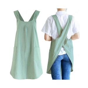 简约日韩风棉麻围裙女款居家舒适罩衣花店复古免系带围兜