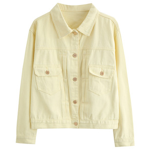 2025秋冬新款宽松洗水棉牛仔外套女翻领单排扣夹克纯色短款上衣