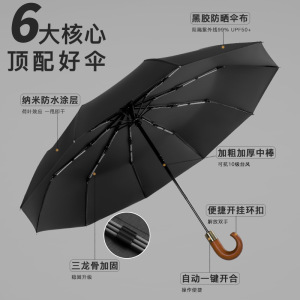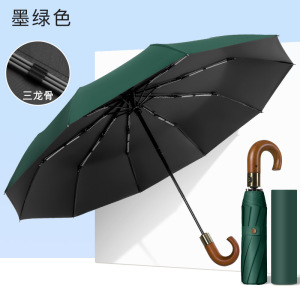 全自动三折伞弯钩木柄伞黑胶防晒折叠广告伞晴雨两用伞刻字礼品伞