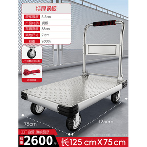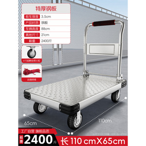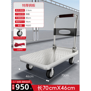 钢板小推车拉货手推车搬运车家用平板车便携拖车折叠小拉车手新款
