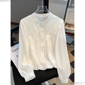 法式白衬衫女高级感春季2025年新款好看蕾丝花边长袖漂亮小衫上衣