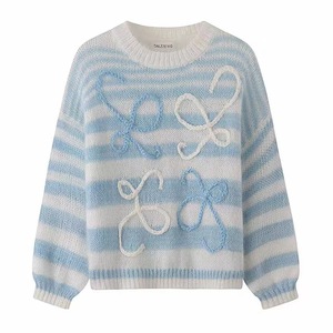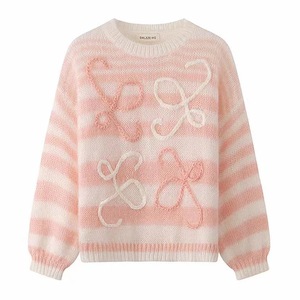 欧美新款女装2025秋冬季网红同款彩虹撞色条纹毛衣女宽松套头针织