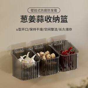 透明収納ボックス壁掛けパンチフリーキッチン収納ラック生姜とニンニク収納ボックス収納バスケット多機能収納バスケット