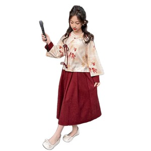 女の子馬面スカートスーツ 2025 新中大型子供漢服古代衣装新中国風唐装 2 点セット春と秋