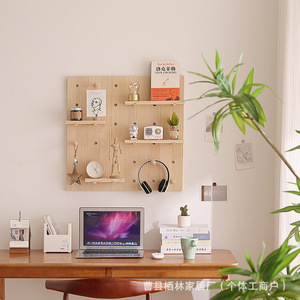 松木洞洞板收纳架实木搁板挂板家用学校洞洞板整理架洞洞板置物架