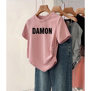 不规则短款纯棉正肩短袖T恤女2024年新款设计感小众粉色上衣体恤