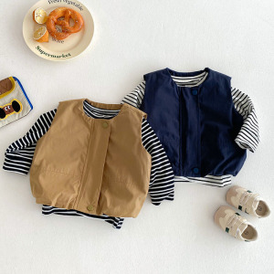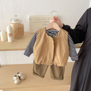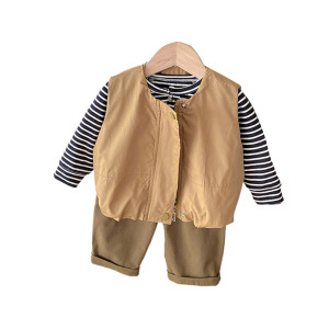 男宝宝衣服2025新款春秋季儿童马甲上衣秋装工装背心马夹裤子套装